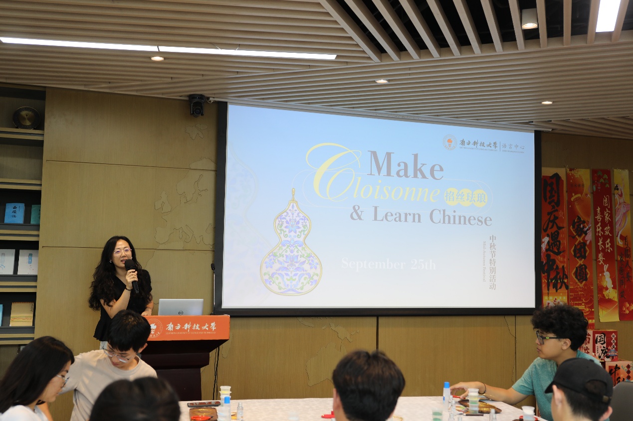 On September 26, over 30 international faculty and students at the Southern University of Science and Technology (SUSTech) joined a special Mid-Autumn event. Co-hosted by the Center for Language Education (CLE), SUSTech Language Committee, and SUSTech Global. The 2025 Themed Event for the Mid-Autumn Festival- “Make Cloisonné and Learn Chinese” linked traditional craftsmanship with Mandarin study.